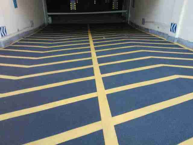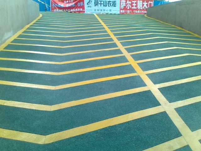 還有一種措施是以前用的環(huán)氧樹脂加沙做出的防滑坡道,曾風(fēng)靡一時,但是,環(huán)氧樹脂沒有耐候性,耐壓性不夠,使用時間很短就會出現(xiàn)褪色起殼等現(xiàn)象,這些都不是很好的防滑措施。