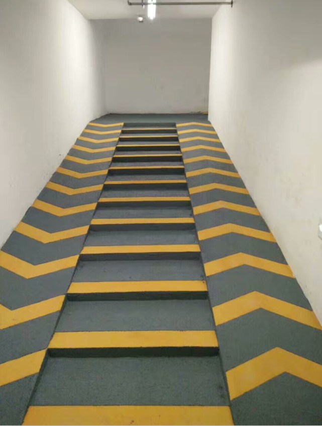 自行車防滑坡道和車庫出入口防滑坡道施工步驟類似,分為抗壓層和止滑層,唯一不同的區別在于美紋紙的設計方法,根據現場面積以及甲方要求來設計不同的方案。鴻坤防滑坡道材料適用于任何斜坡或有防滑要求的路面,水性環保材料,施工簡單便捷。