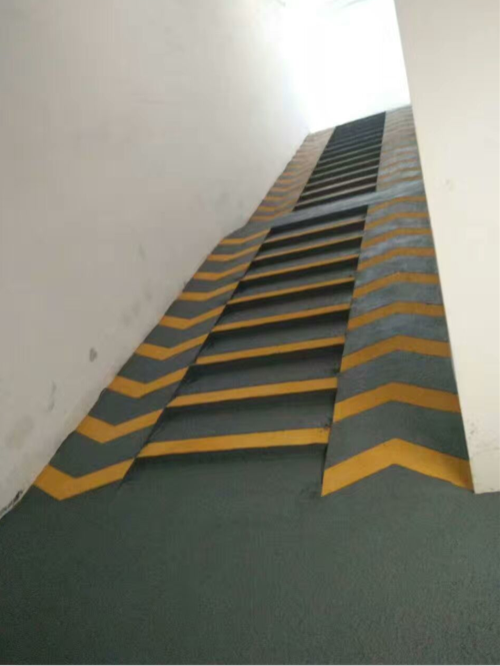 蘇州東方之門的自行車防滑坡道采用鴻坤的防滑坡道材料施工,黃灰搭配設計,現代感十足,不僅可以保護基礎水泥地面不被磨損,還具有高效的防滑效果,保護騎行人員的安全。