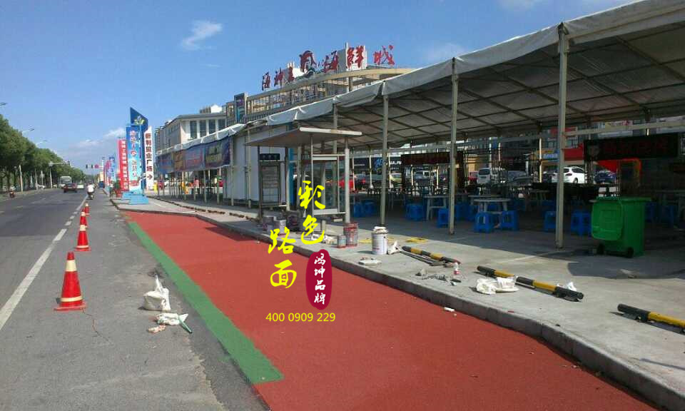 公交車站臺為何選擇鴻坤彩色路面施工: