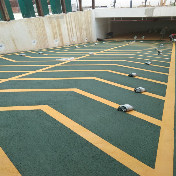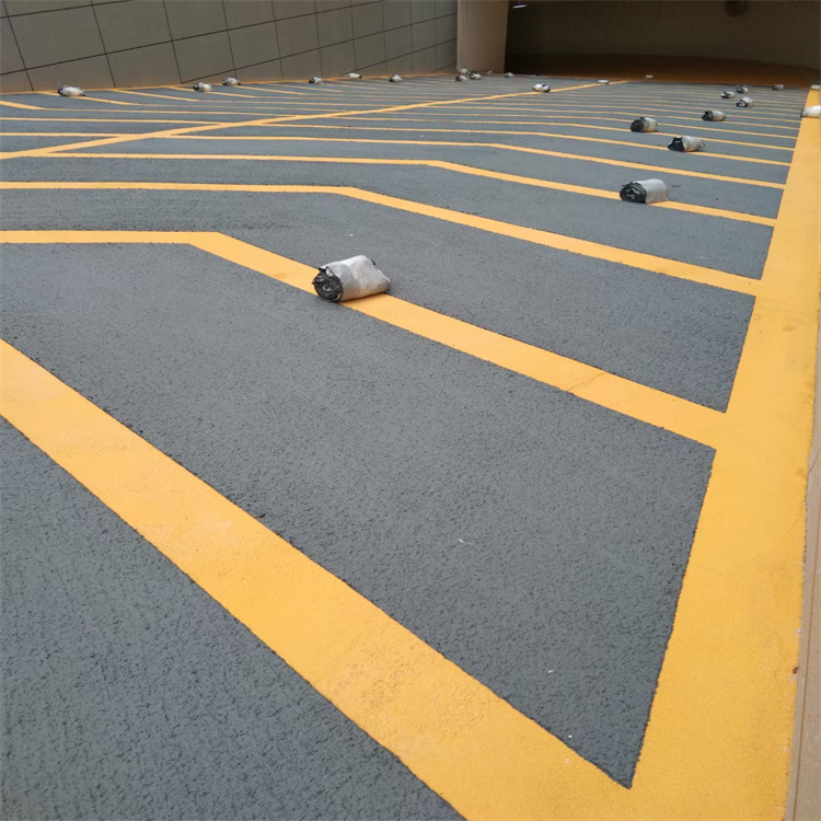 鴻坤防滑坡道材料屬于聚合物砂漿材料,水性環(huán)保,施工簡單,施工人員和使用人員都很友好。無震動防滑坡道施工分為打底、批刮黃色抗壓層、貼美紋紙、批刮綠色止滑層和罩面幾個(gè)步驟,整體厚度在5-6mm左右,表面的粗糙顆粒形成一定的防滑效果,不僅有安全防滑的功能,還有導(dǎo)向箭頭,對車輛行駛有引導(dǎo)作用。